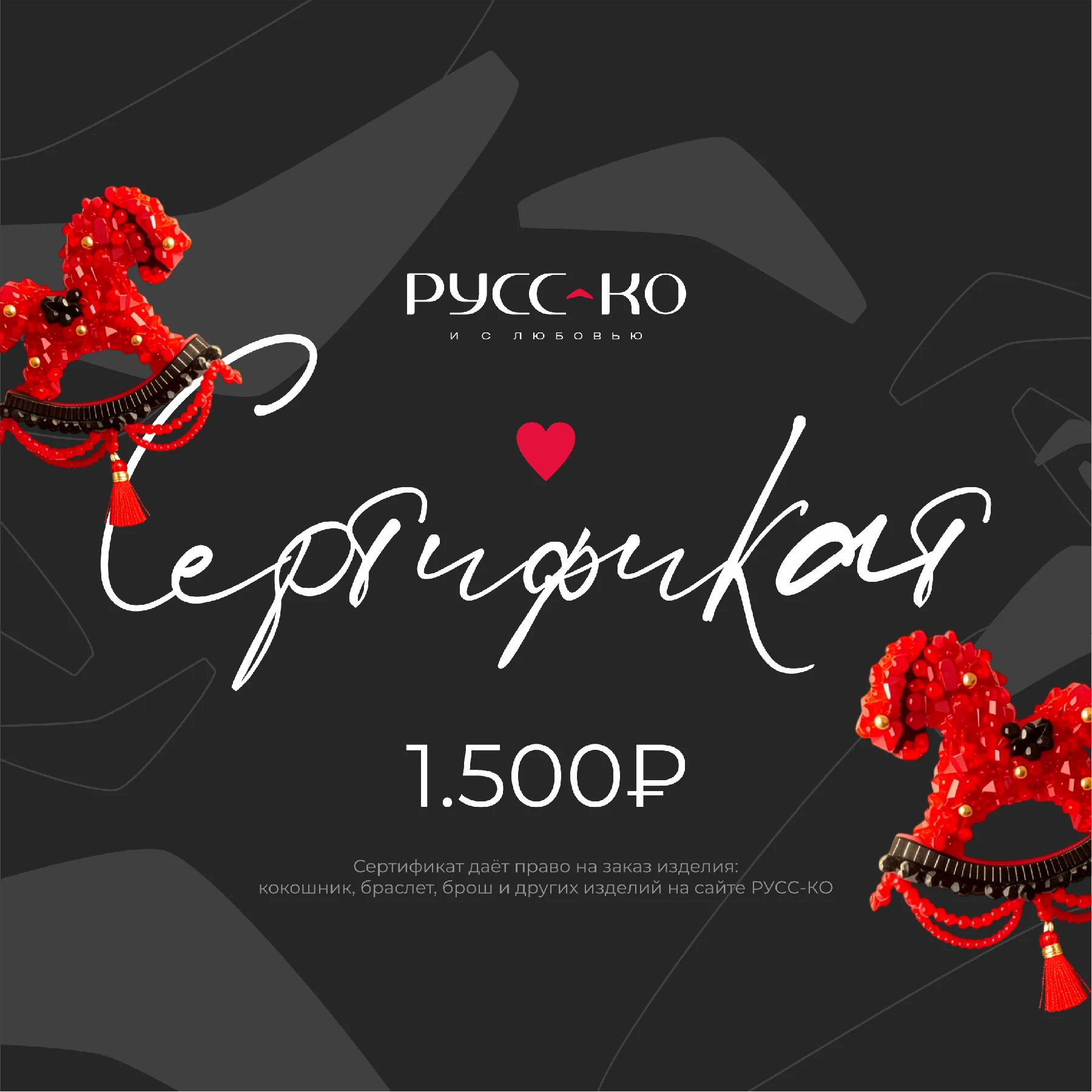 Сертификат даёт право на заказ изделия: кокошник, браслет, брош и других изделий на сайте РУСС-КО